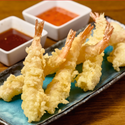 Warzywa lub krewetki w oryginalnym japońskim cieście, z jednym sosem (porcja 5 szt.) lub z zestawem 3 sosów (porcja 15 szt.): sweet chili, spicy mayo lub Koran mayo.